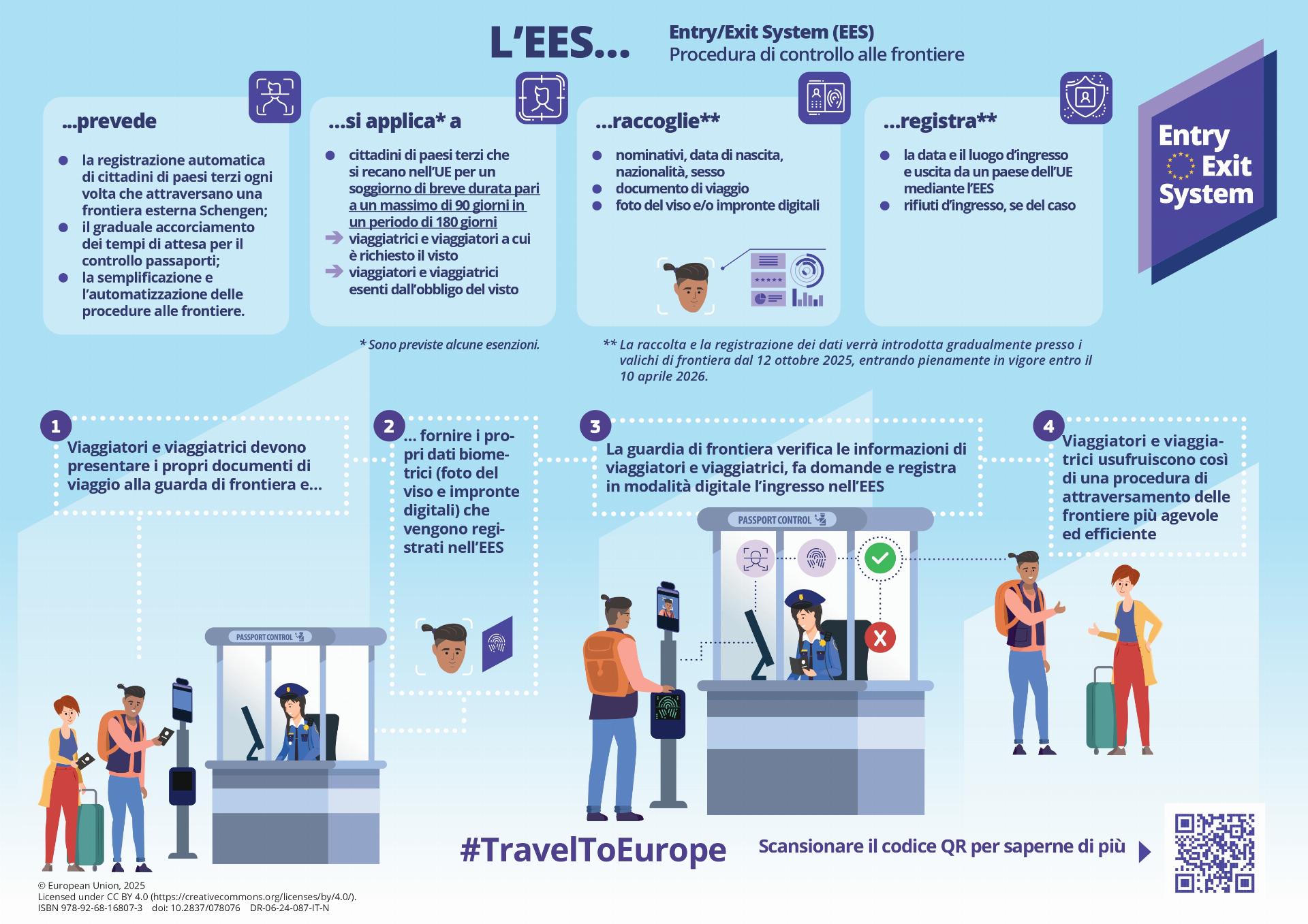 A partire dal 12 ottobre 2025, i 29 paesi europei che utilizzano l’EES introdurranno gradualmente nel corso di sei mesi questo sistema presso le proprie frontiere esterne.